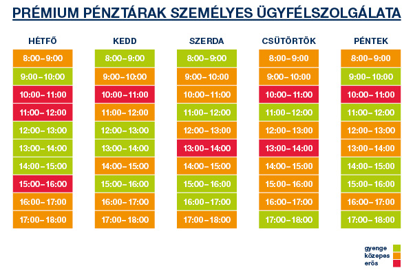 *A foglaltságot jelző színkódokat az elmúlt időszak átlagos ügyfélforgalmi adatai alapján határoztuk meg.
